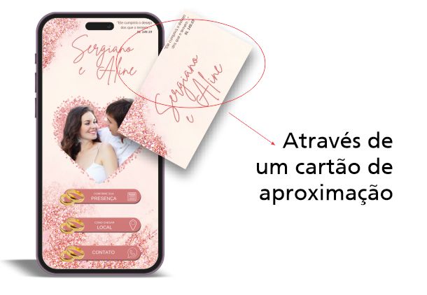 . O cartão de aproximação é um cartão físico de PVC com um microchip embutido que basta encostar no celular e abre automaticamente o seu convite. Ele é entregue pelos Correios no prazo de 20 a 30 dias.